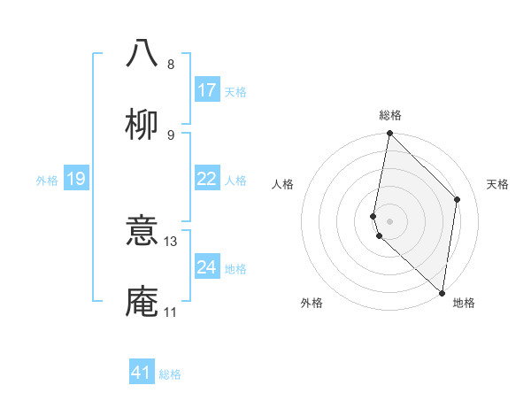 八柳 意庵さんを姓名の画数から五運を鑑定