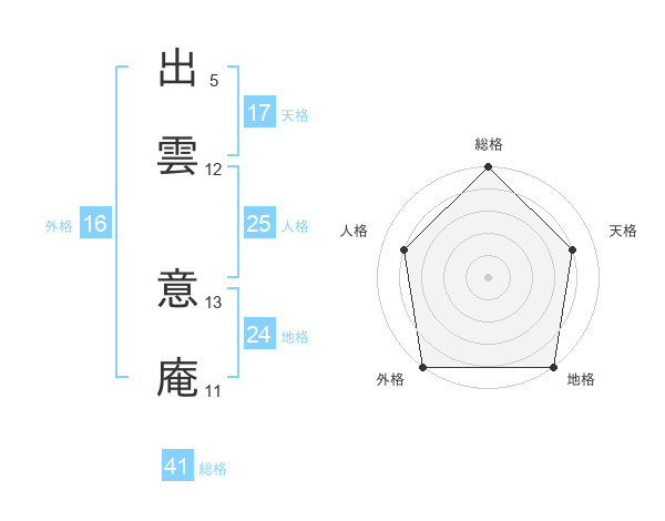 出雲 意庵さんの総格は41画の5点!