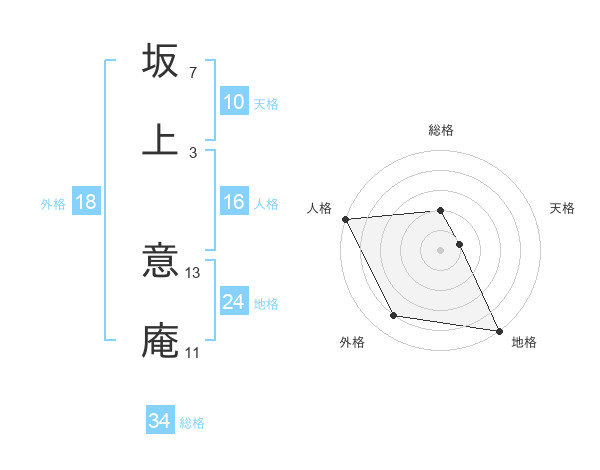 坂上 意庵さんを姓名の画数から五運を鑑定