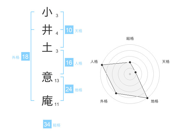 小井土 意庵さんの総格は34画の2点!