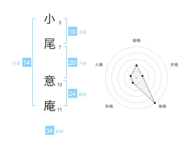 小尾 意庵さんの総格は34画の2点!