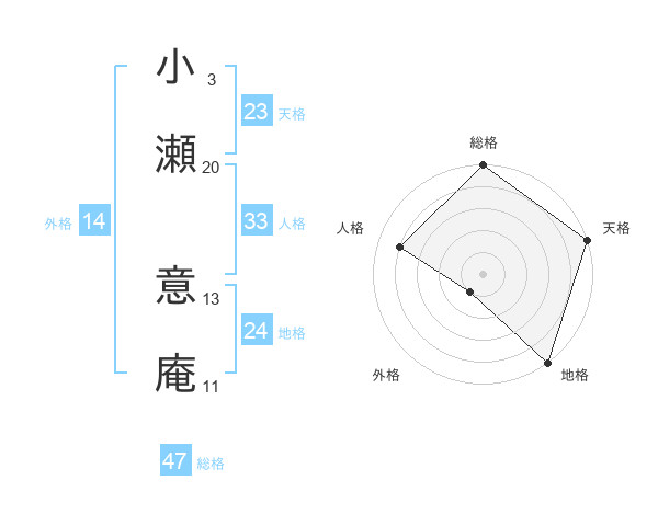 小瀬 意庵さんの総格は47画の5点!