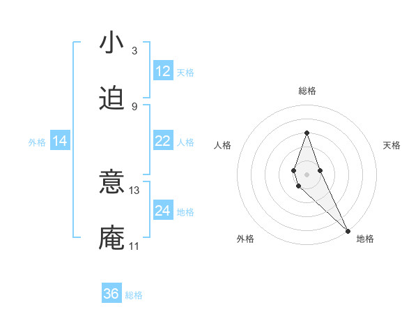 小迫 意庵さんを姓名の画数から五運を鑑定