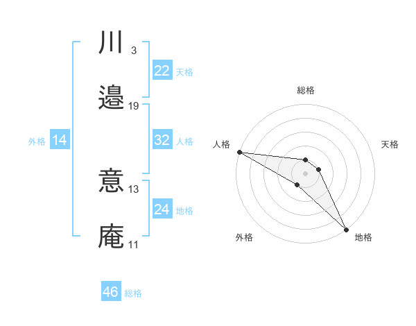 川邉 意庵さんを姓名の画数から五運を鑑定