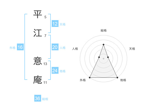 平江 意庵さんの外格は16画の5点!