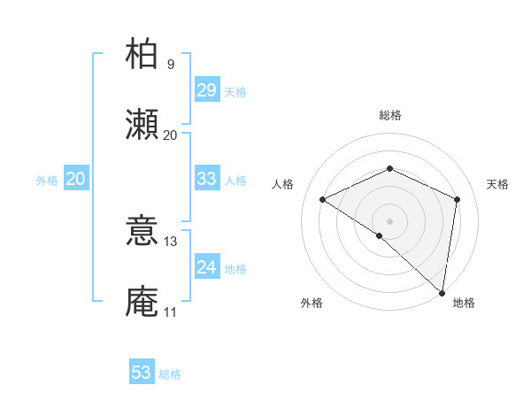 柏瀬 意庵さんの総格は53画の3点!