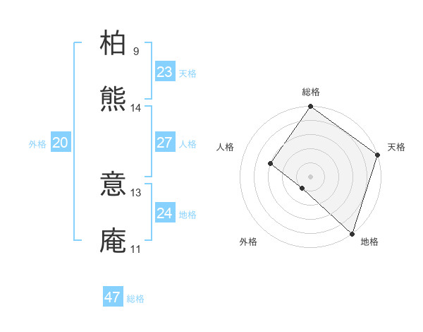 柏熊 意庵さんの総格は47画の5点!