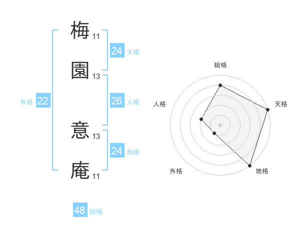 梅園 意庵さんを姓名の画数から五運を鑑定