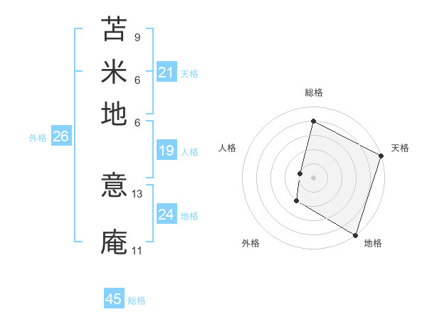 苫米地 意庵さんの天格は21画の5点!
