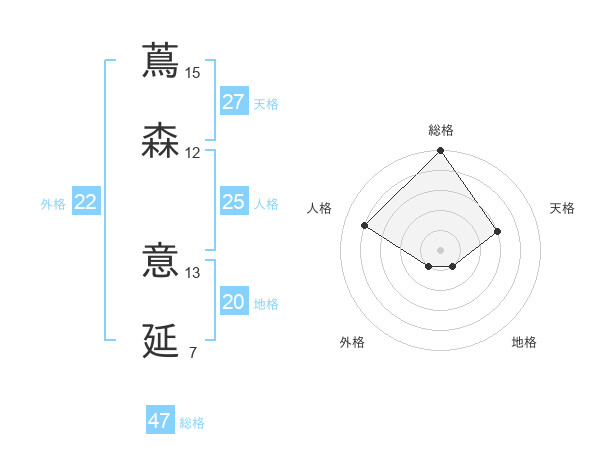 蔦森 意延さんの総格は47画の5点!