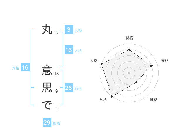 丸 意思でさんの総格は29画の4点!