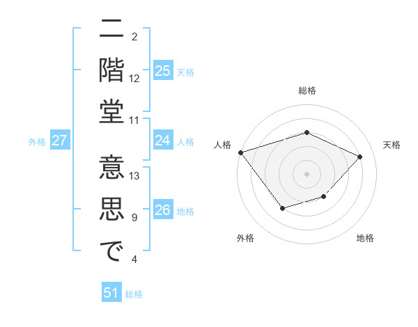 二階堂 意思でさんを姓名の画数から五運を鑑定