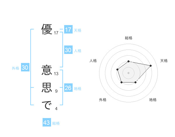優 意思でさんの天格は17画の4点!