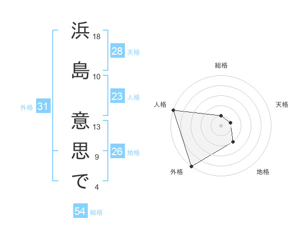 浜島 意思でさんを姓名の画数から五運を鑑定