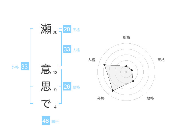 瀬 意思でさんの天格は20画の1点!