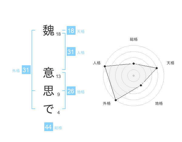 魏 意思でさんの総格は44画の2点!