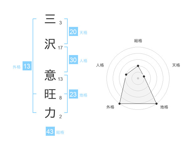 三沢 意旺力さんを姓名の画数から五運を鑑定