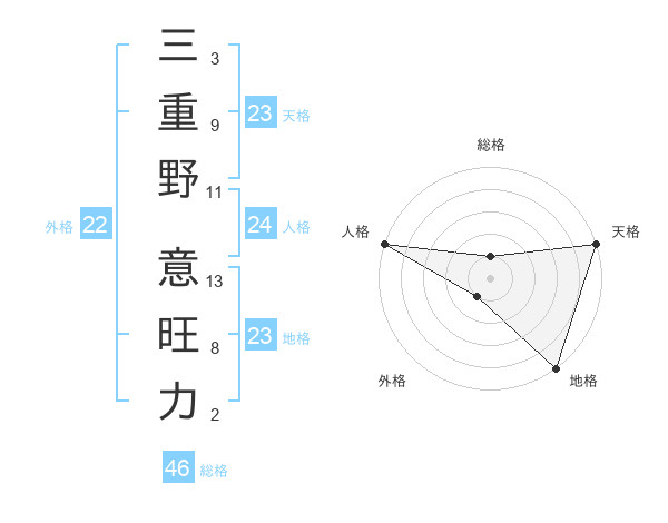 三重野 意旺力さんを姓名の画数から五運を鑑定