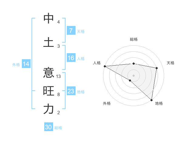 中土 意旺力さんの地格は23画の5点!