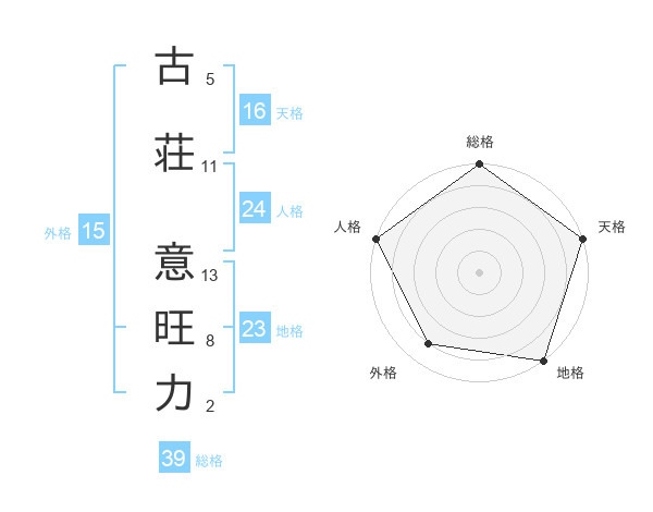古荘 意旺力さんを姓名の画数から五運を鑑定