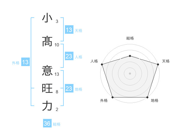 小髙 意旺力さんの外格は13画の5点!