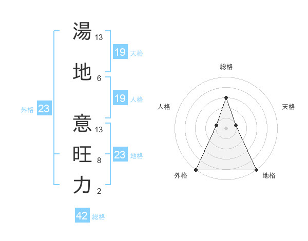 湯地 意旺力さんを姓名の画数から五運を鑑定
