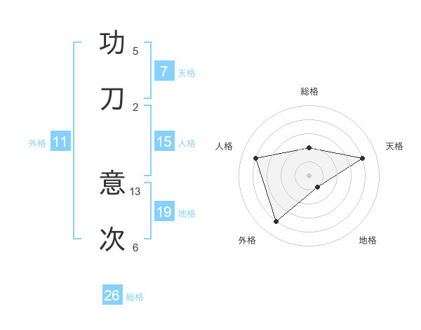 功刀 意次さんの総格は26画の2点!
