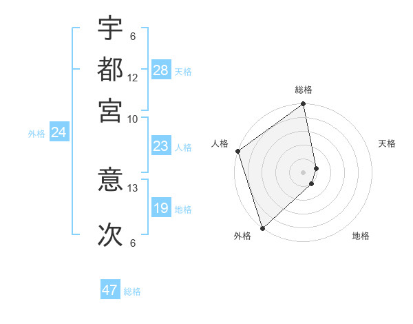 宇都宮 意次さんを姓名の画数から五運を鑑定
