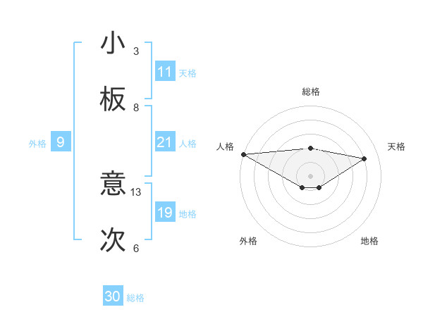 小板 意次さんの総格は30画の2点!