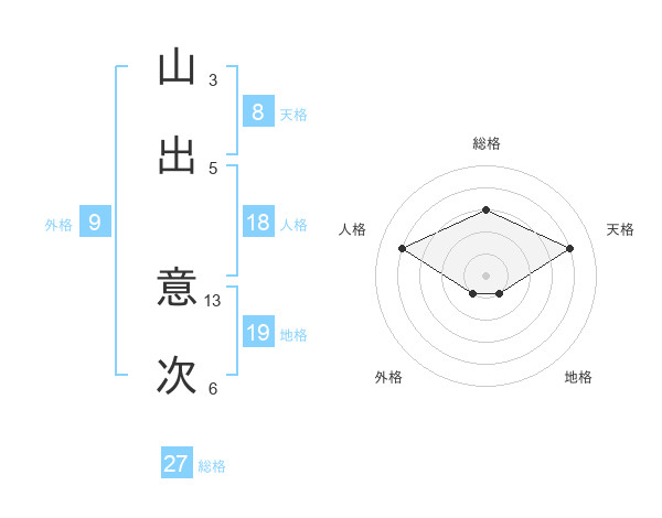 山出 意次さんの総格は27画の3点!