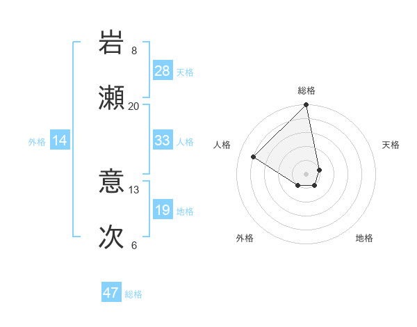 岩瀬 意次さんの総格は47画の5点!
