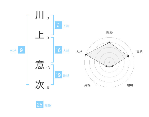 川上 意次さんの総格は25画の4点!
