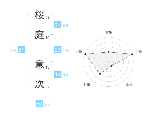 桜庭 意次さんの総格は50画の2点!