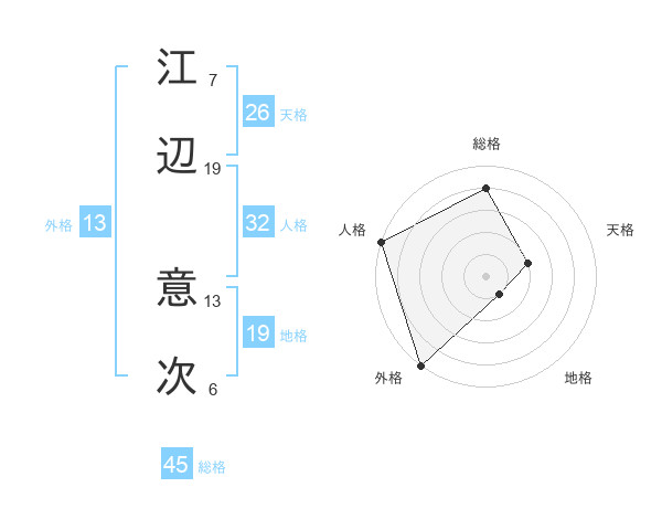 江辺 意次さんの総格は45画の4点!