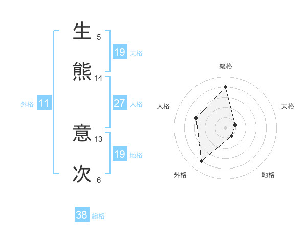 生熊 意次さんの総格は38画の4点!
