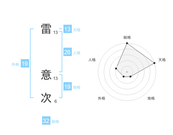 雷 意次さんの天格は13画の5点!