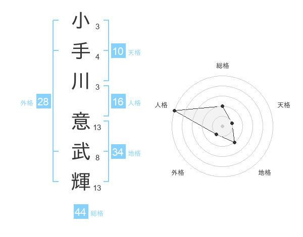 小手川 意武輝さんを姓名の画数から五運を鑑定