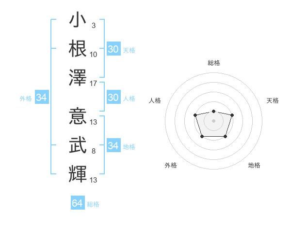小根澤 意武輝さんを姓名の画数から五運を鑑定