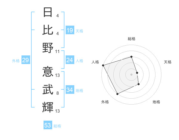 日比野 意武輝さんを姓名の画数から五運を鑑定