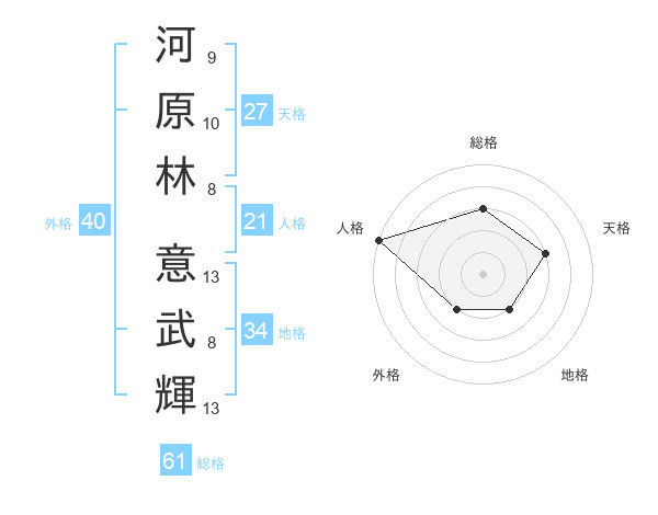 河原林 意武輝さんを姓名の画数から五運を鑑定