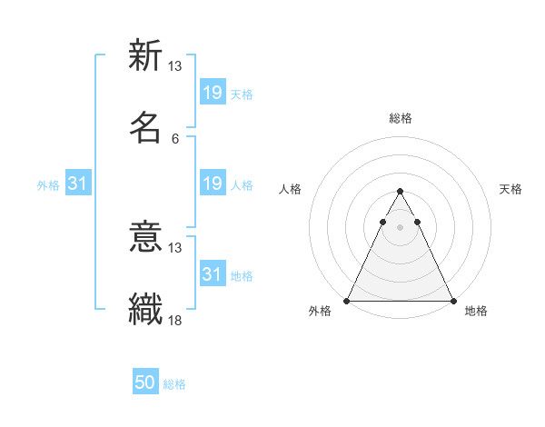 新名 意織さんの総格は50画の2点!