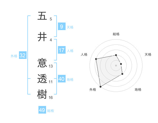 五井 意透樹さんの外格は32画の5点!