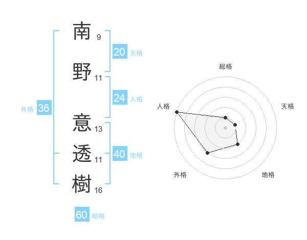 南野 意透樹さんの総格は60画の1点!