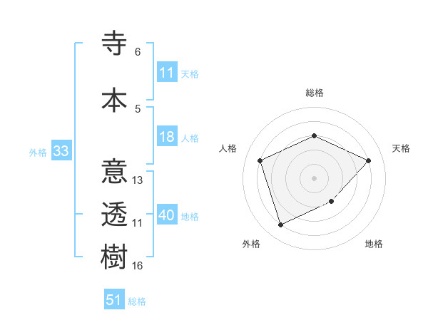 寺本 意透樹さんを姓名の画数から五運を鑑定