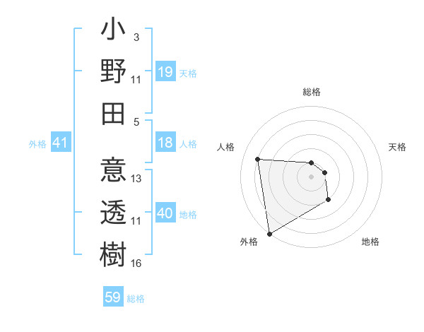 小野田 意透樹さんを姓名の画数から五運を鑑定