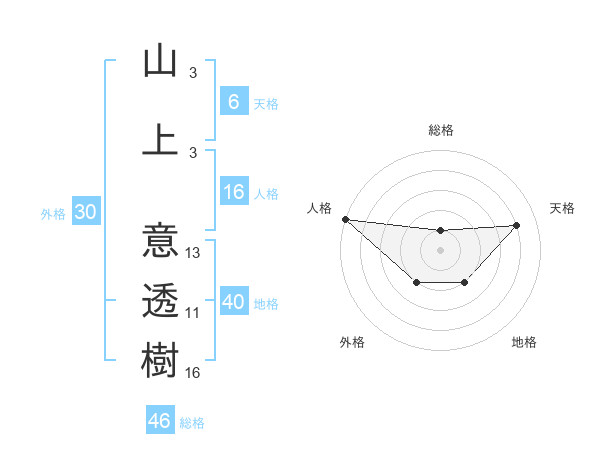 山上 意透樹さんを姓名の画数から五運を鑑定