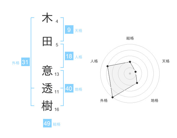 木田 意透樹さんを姓名の画数から五運を鑑定