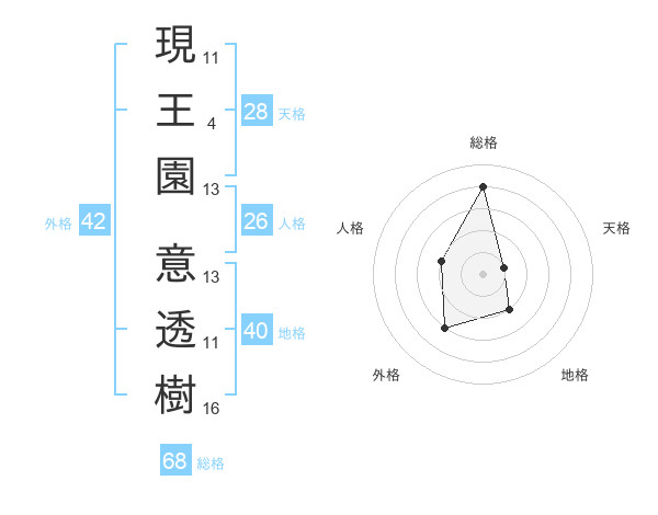 現王園 意透樹さんを姓名の画数から五運を鑑定