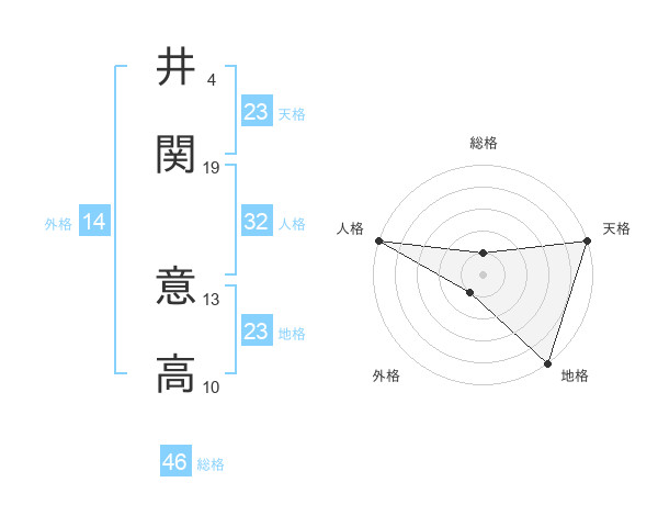 井関 意高さんの総格は46画の1点!