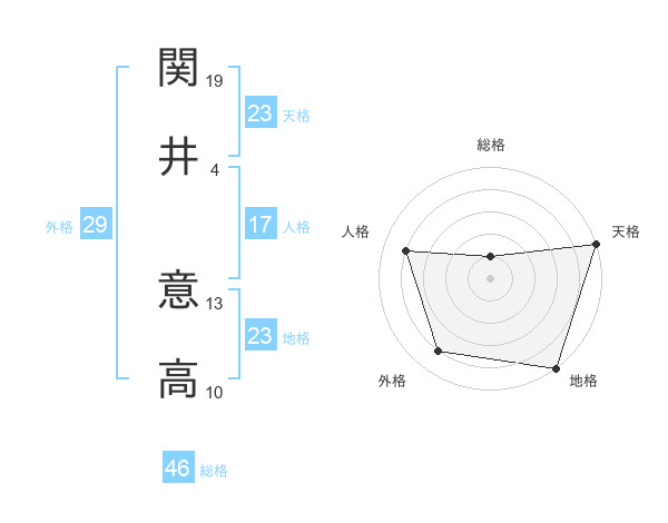 関井 意高さんの地格は23画の5点!